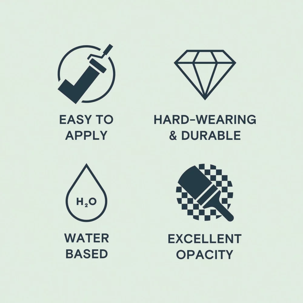 A premium high quality, tough and durable emulsion. Excellent opacity and easy application with low splatter. Quick drying, scrubbable finish ideal for use on interior walls and ceilings. Designed specifically for the trade professional to achieve the perfect finish efficiently. Low odour, low VOC, water-based paint for an improved indoor air-quality.